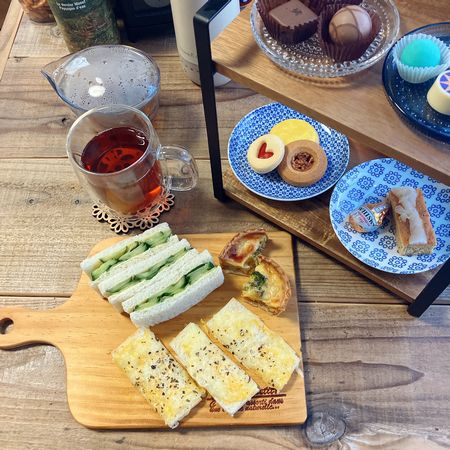 セイボリーはチーズトーストとミニキッシュ、そしてマストな「キューカンバーサンドイッチ」(笑)です。ちゃんとバターとマスタード、白ワインビネガーで、本場のレシピを踏襲。