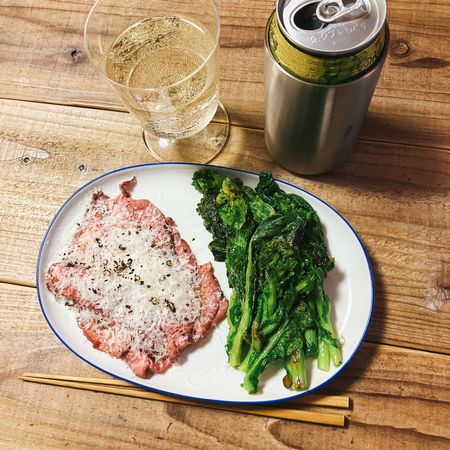 ワインは白、と言いたいところですが、実はノンアルの白。休日じゃないと〇オンに行かないので、必然的に休日の夜の晩酌ノンアルになってしまいました(晩酌とは)